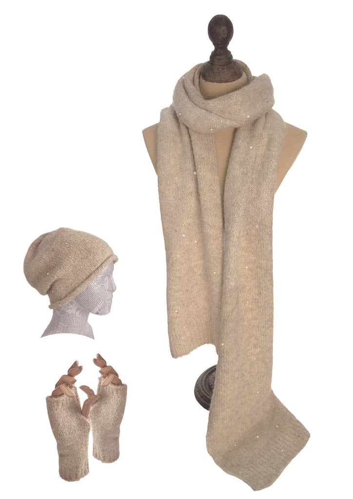 Blended fabrics long scarve with a shimmer and sequins. matching beanie style hat and miser mitts available see seperate listings